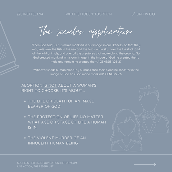 Society has boiled down the debate on abortion to a woman's right to choose. However, the life of the child is just as equal in value as that of the mother. No matter what stage of life, a child in the womb was created in the image of God and is loved just as much by God as his or her mother is. Scripture tells us…